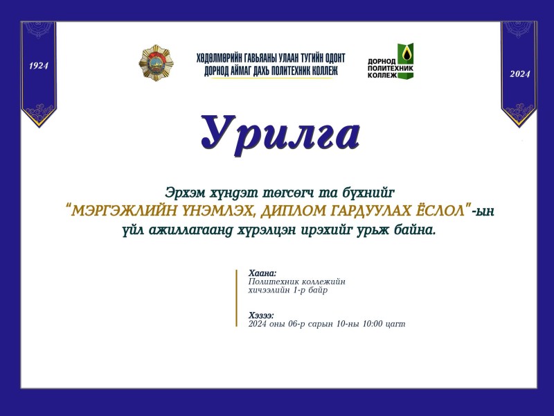 Захирлын 2023 оны А/39 дүгээр тушаалаар Байгууллагын чанарын өөрийн үнэлгээ хийх ажлын хэсэг”-ийг томилон, удирдамж, төлөвлөгөөний дагуу “Чанарын менежментийн өөрийн үнэлгээг 2023 оны 10 дугаар сарын 23, 24 өдрүүдэд зохион байгууллаа. Тус чанарын өөрийн үнэлгээний үйл явцад Монголын Чанарын Удирдлагын Зөвлөхүүдийн холбооны зөвлөх багш Д.Азбилэг ажиглагчаар ажиллаж, үнэлээчдэд зөвлөн тусаллаа.