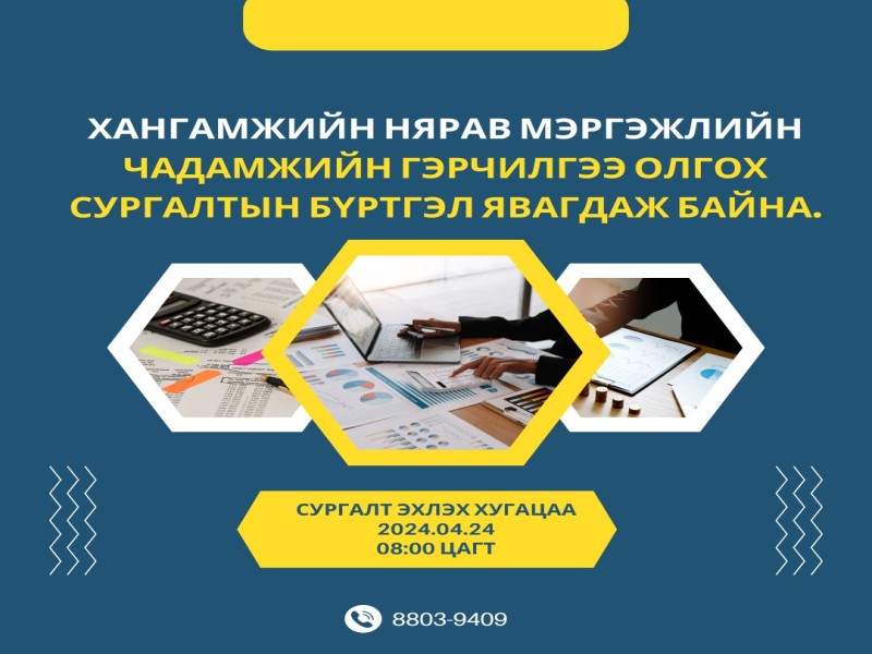 Хангамжийн нярав мэргэлжлийн чадамжийн гэрчилгээ олгох сургалтын бүртгэл явагдаж байна