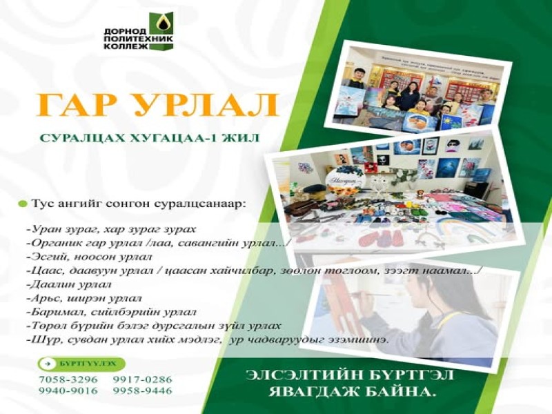 ГАР УРЛАЛ МЭРГЭЖЛИЙН АНГИД ЭЛСЭН СУРАЛЦАХЫГ УРЬЖ БАЙНА.